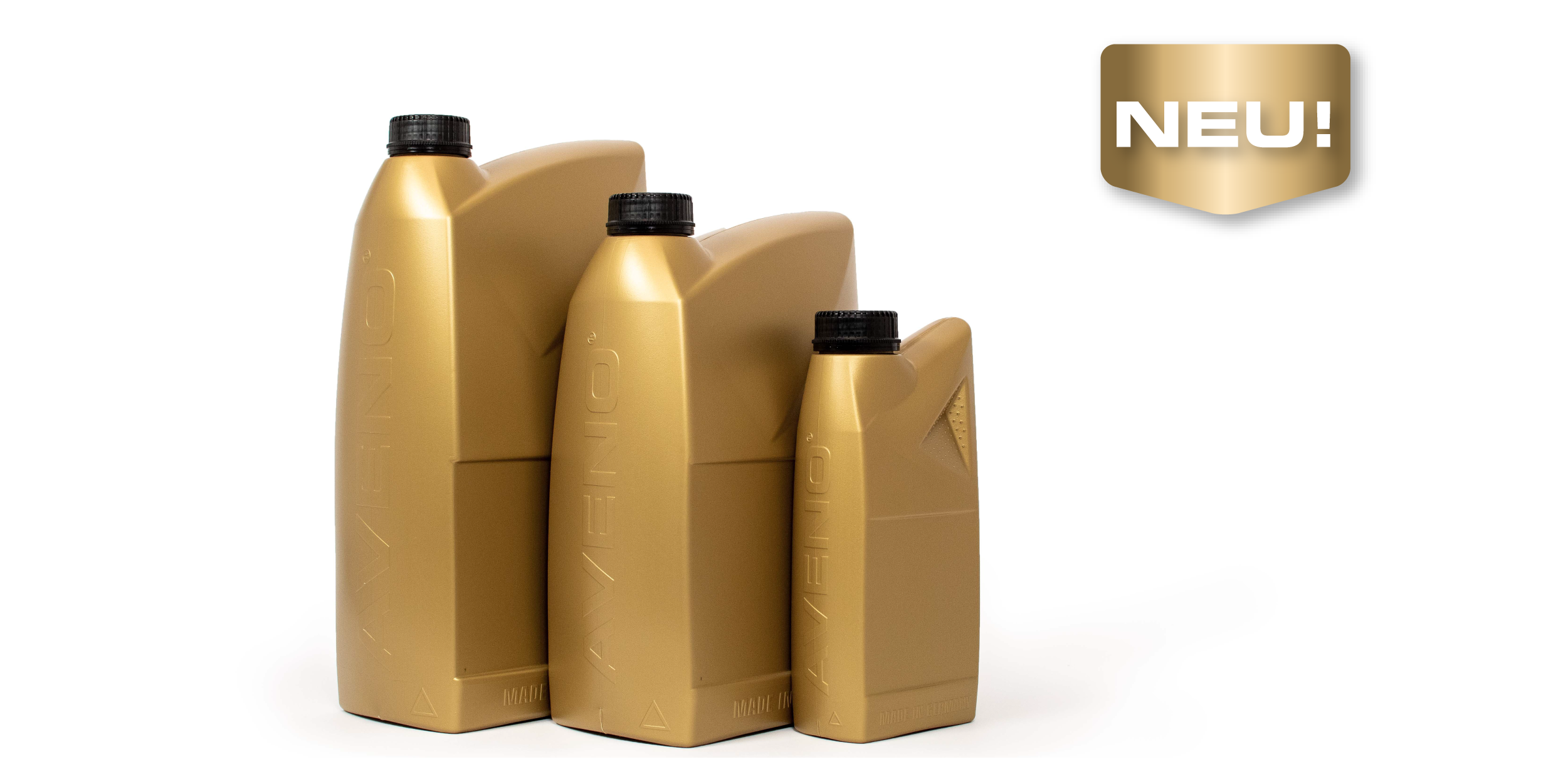 Im Zuge der Modernisierung haben wir uns auch unsere Gebinde vorgenommen und eine neue, attraktive Form aus widerstandsfähigem Material entwickelt. Dank der Kombination aus unserem jahrelangen Know-How sowie Anregungen und Wünschen unserer Kunden haben wir auf diese Weise eine Flasche entwickelt, die vor allem im Handling auf ganzer Linie punktet. Dafür sorgen beispielsweise ein funktioneller, seitlicher Griff, ein auslaufsicherer Verschluss sowie eine Skala mit Sichtstreifen. Besonders auffallend ist der großflächig geprägte AVENO-Schriftzug, der unser hochwertiges Design abrundet und zukünftig in den Regalen als Hingucker sorgt.